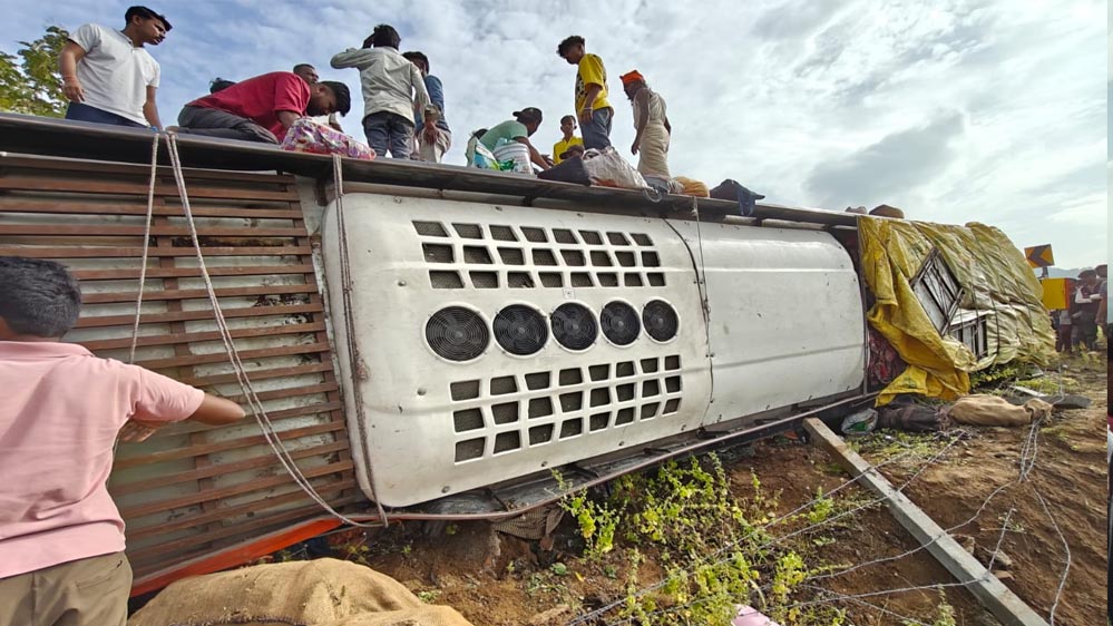 बड़वानी हादसा: श्रद्धालुओं से भरी बस पलटी, बोकराटा-खेतिया रोड पर एक की मौत