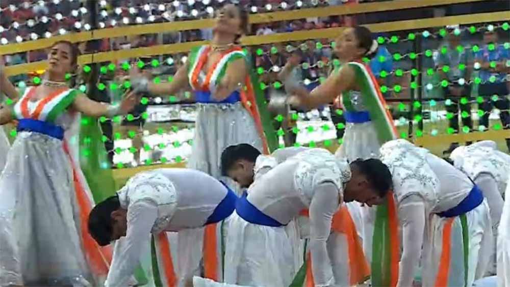 वहीं, कार्यक्रम के दौरान भारतीय सेनाओं के शौर्य को भी ऑडियो-विजुअल माध्यम से प्रदर्शित किया गया। इस दौरान शंकर महादेवन ने अपने बेटों के साथ मैं रहूं या न रहूं, भारत ये रहना चाहिए। हां, यही रस्ता है तेरा, जैसे गीतों पर देशभक्ति से भरपूर प्रस्तुति दी। इस दौरान नरेंद्र मोदी स्टेडियम में मौजूद दर्शक भी कलाकारों के सुर से सुर मिलाते रहे और भारतीय सेनाओं को अपनी सलामी भेजते रहे। इसके बाद शंकर महादेवन और उनके साथी कलाकारों ने ‘ऐ वतन-वतन मेरे आबाद रहे तू’ गीत पेश किया।