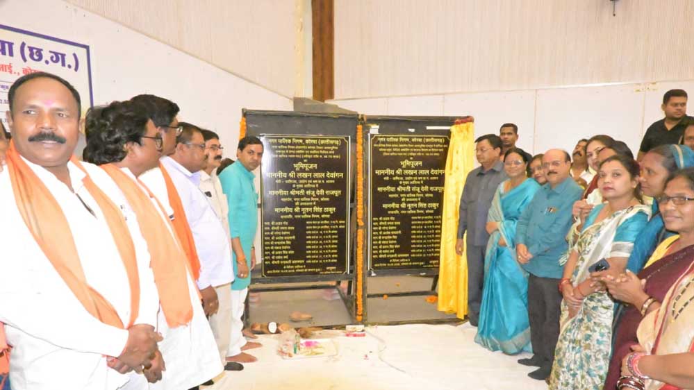 प्रदेश के उद्योग, वाणिज्य व श्रम मंत्री लखनलाल देवांगन ने नगर पालिक निगम कोरबा के नेहरू सभागार को संवारने, सभागार को सर्वसुविधायुक्त बनाने एवं परिसर का सौदंर्यीकृत किए जाने हेतु कल सोमवार क़ो 02 करोड़ 19 लाख रूपये के विभिन्न विकास कार्यो व सुविधाओं को बढ़ाने से संबंधित कार्यो का भूमिपूजन किया। इस मौके पर महापौर श्रीमती संजूदेवी राजपूत, सभापति नूतन सिंह ठाकुर, प्रभारी आयुक्त विनय मिश्रा, मेयर इन काउंसिल के सदस्यगण, पार्षदगण, जनप्रतिनिधि एवं निगम के अधिकारी कर्मचारी उपस्थित थे।