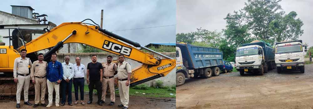 अवैध रेत उत्खनन के खिलाफ बड़ी कार्रवाई, अवैध रेत खनन में लगी मशीन और 7 हाईवा जब्त