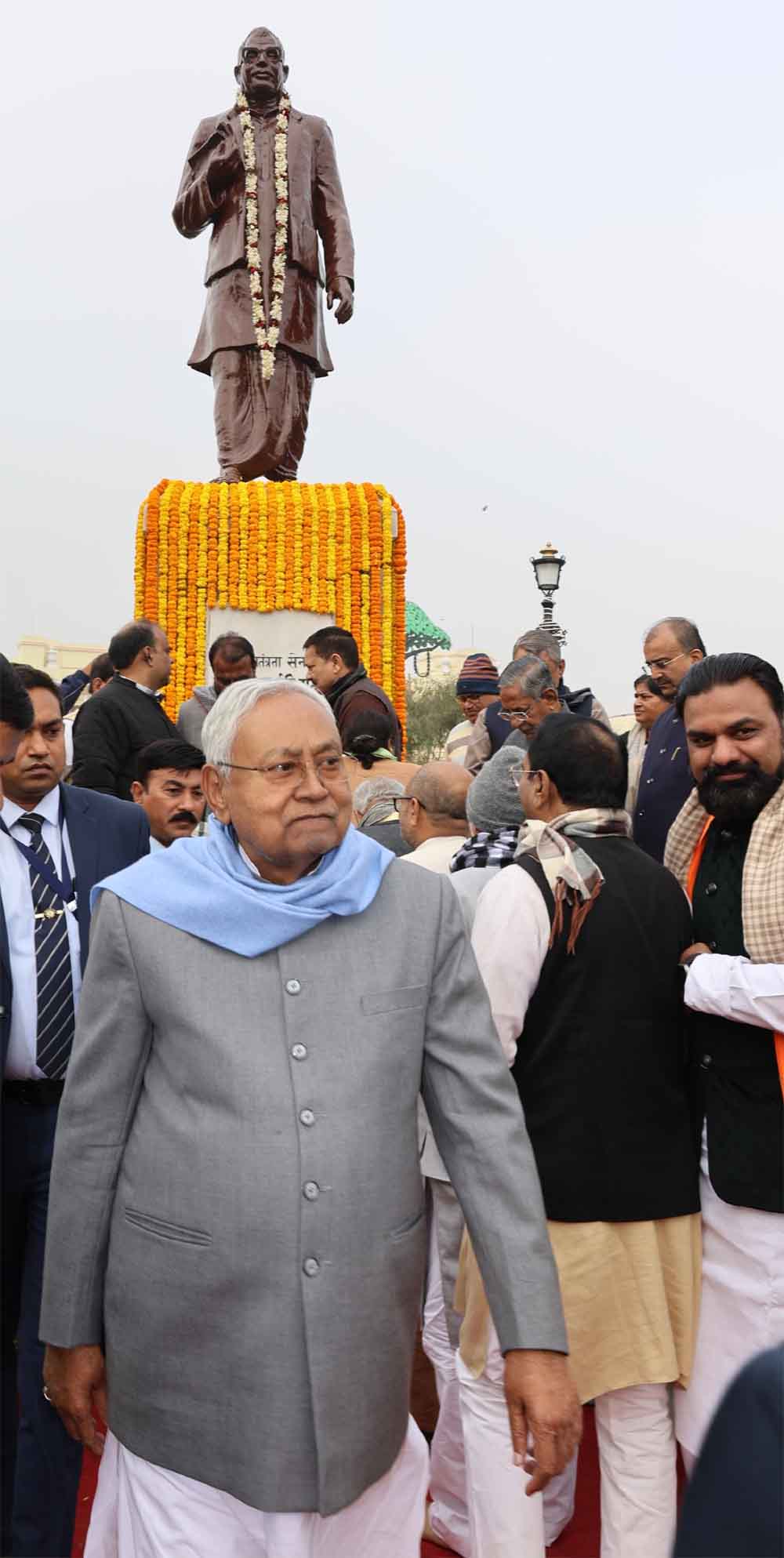 भारत रत्न जननायक कर्पूरी ठाकुर जी की 101वीं जयंती के अवसर पर बिहार विधान मंडल परिसर में आयोजित राजकीय समारोह में मुख्यमंत्री श्री नीतीशकुमार ने उनकी आदमकद प्रतिमा पर पुष्प अर्पित कर भावभीनी श्रद्धांजलि दी।