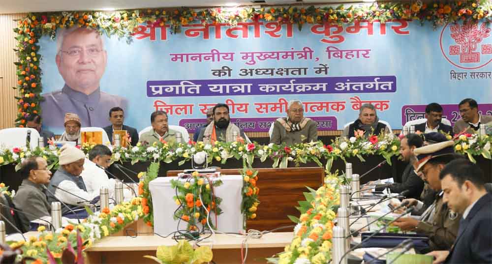 मुख्यमंत्री श्री नीतीश कुमार ने आज प्रगति यात्रा के तीसरे चरण में सहरसा जिले में चल रही विकासात्मक योजनाओं के संबंध मेंप्रमंडलीय सभागार (कोशी प्रमंडल), सहरसा में समीक्षात्मक बैठक की। समीक्षात्मक बैठक में सहरसा के जिलाधिकारी श्री वैभव चौधरी ने जिले के विकासकार्यों का प्रस्तुतीकरण के माध्यम से विस्तृत जानकारी दी।