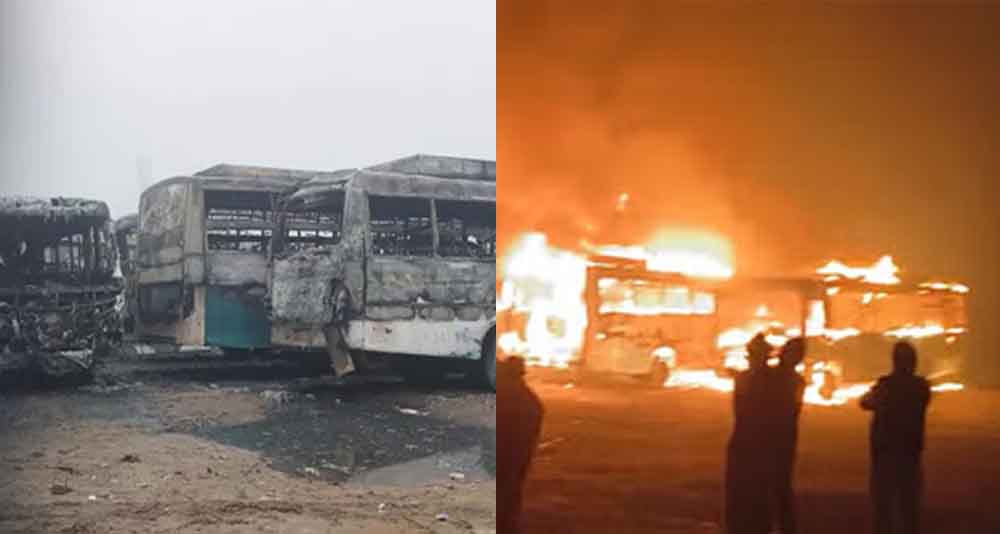 बिहार-दरभंगा में बस स्टैंड में देर रात लगी आग में धू-धू कर जल गईं पांच बसें