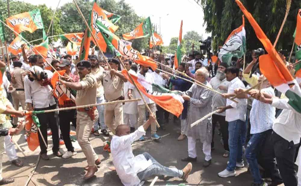 कांग्रेस ऑफिस पर BJP का हल्ला बोल, मारपीट-तोड़फोड़ का आरोप