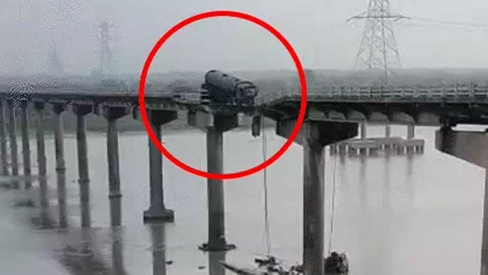 महिसागर नदी पर बना ब्रिज टूटा, कई वाहन गिरे, ट्रक लटका, 2 लोगों की मौत