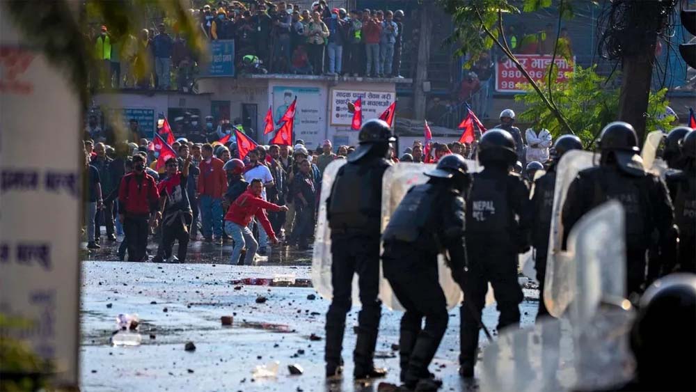 नेपाल पुलिस ने राजतंत्र समर्थक प्रदर्शनकारियों को तितर-बितर करने के लिए वॉटर कैनन का इस्तेमाल किया। पुलिस ने खाली गोलियां भी चलाईं। तिनकुने क्षेत्र में स्थिति नियंत्रण से बाहर हो गई, जहां हजारों प्रदर्शनकारियों ने 'राजा आओ देश बचाओ', 'भ्रष्ट सरकार नीचे जाओ' और 'हमें राजतंत्र वापस चाहिए' जैसे नारे लगाए। कई प्रदर्शनकारी अपने हाथ में नेपाल का राष्ट्रीय ध्वज और पूर्व राजा ज्ञानेंद्र शाह की तस्वीरें लिए हुए थे। ये लोग जोर-जोर से नारेबाजी कर रहे थे और सड़कों पर दौड़ते हुए पत्थरबाजी की।