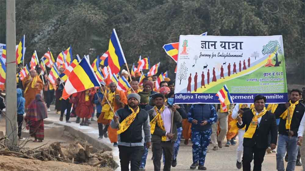 बिहार-गया में महाबोधि मंदिर तक निकली ज्ञान यात्रा में देश-विदेश के बौद्ध श्रद्धालु शामिल