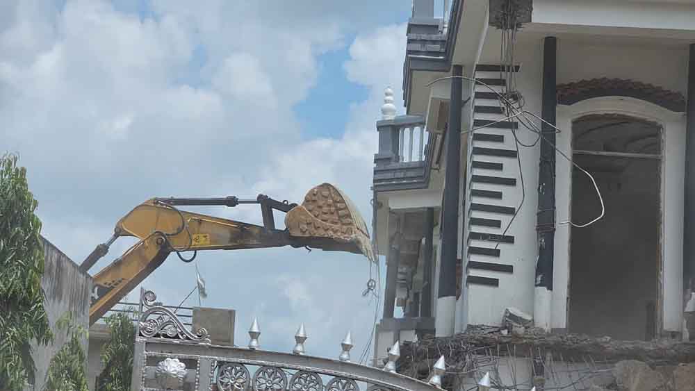 बांग्लादेश के संस्थापक शेख मुजीबुर रहमान के आवास पर अब बुलडोजर चल गया है। एक दिन पहले ही यहां तोड़फोड़ और आगजनी की गई थी। खबरें हैं कि मौके पर एक फिलिस्तीनी झंडा भी देखा गया है। खास बात है कि सोशल मीडिया पर पहले ही 'बुलडोजर जुलूस' की अपील की जा रही थी। यह सब उस दौरान हुआ, जब शेख हसीना लोगों को संबोधित करने की तैयारी कर रही थीं।