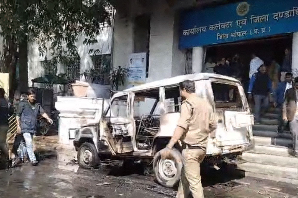 भोपाल के कलेक्टोरेट में गाड़ी में आग, प्रॉपर्टी विवाद की शिकायत लेकर पहुंचा था परिवार