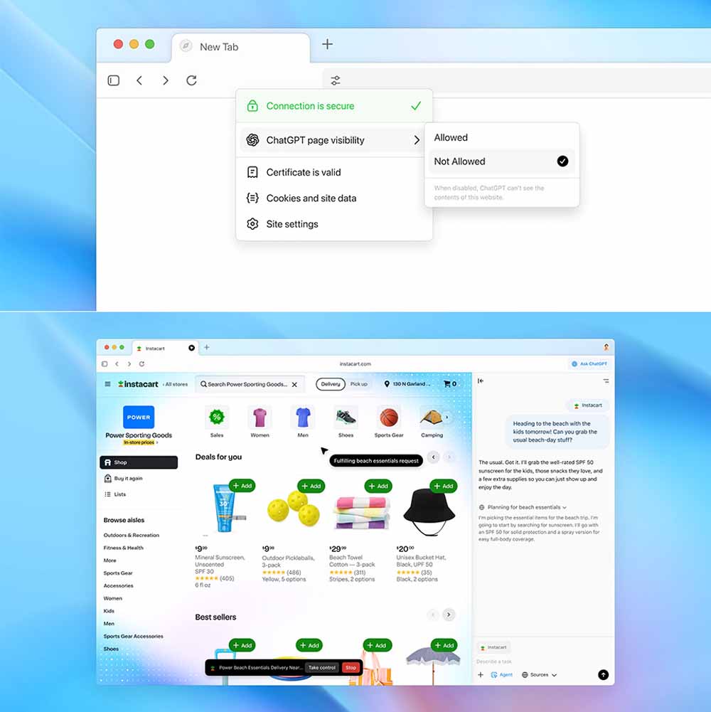 कंपनी का कहना है कि यूजर्स के पास एआई द्वारा याद रखे जाने वाले कंटेंट को लेकर पूरा कंट्रोल होगा। वे डेटा क्लियर कर सकते हैं और प्राइवेटली ब्राउज भी कर सकते हैं। डिफॉल्ट रूप से, ब्राउजिंग सामग्री का इस्तेमाल मॉडल ट्रेनिंग के लिए तब तक नहीं किया जाएगा जब तक कि यूजर ऑप्ट-इन करने का विकल्प नहीं चुन लेते। एक और बड़ा अपग्रेड 'एजेंट मोड' की शुरुआत है, जो चैटजीपीटी को सीधे ब्राउजर के अंदर ही एक्शन लेने की अनुमति देता है।