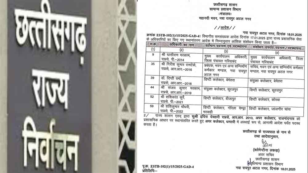 आचार संहिता से पहले नियम ताक में रखकर धमतरी अपर कलेक्टर को गृह जिला गरियाबंद में जिला पंचायत सीईओ की नियुक्ति पर कांग्रेस ने भी सवाल उठाया था. कलेक्टर एवं जिला निर्वाचन अधिकारी की ओर से जारी आदेश में कहा गया है कि घासीराम मरकाम, मुख्य कार्यपालन अधिकारी, जिला पंचायत गरियाबंद को त्रिस्तरीय पंचायतों के आम निर्वाचन 2024-25 के तहत जिला पंचायत के निर्वाचन के लिए संपूर्ण जिला गरियाबंद के लिए रिटर्निंग ऑफिसर (पंचायत) नियुक्त किया गया था. उक्त आदेश में संशोधन करते हुए मरकाम के स्थान पर ऋषा ठाकुर, अपर कलेक्टर गरियाबंद को त्रिस्तरीय पंचायतों के आम निर्वाचन 2024-25 हेतु जिला पंचायत के निर्वाचन के लिए संपूर्ण जिला गरियाबंद के लिए रिटर्निंग ऑफिसर (पंचायत) नियुक्त किया गया है. बता दें कि गरियाबंद जिले में सरकार ने धमतरी जिले में पदस्थ 2014 बैच के जिस राज्य प्रशासनिक सेवा के अधिकारी घासी राम मरकाम को जिला पंचायत सीईओ के रूप में पदस्थ किया गया था. वे इसी जिले के रहने वाले हैं. चुनाव आयोग के प्रावधान के मुताबिक, चुनाव के समय गृह जिला में अफसरों की पोस्टिंग वर्जित माना गया है. जानकारी के मुताबिक मरकाम गरियाबंद तहसील के मोहदा ग्राम के रहने वाले हैं, जबकि इनका ससुराल मैनपुर तहसील के जिडार पंचायत का चिह्रापारा है. मरकाम व उनके परिवार का दोनों तहसील में पुश्तैनी जमीन जायदाद भी है. भरे पूरे परिवार में एक भाई पंचायत सचिव भी है. नगरीय निकाय और पंचायत चुनाव के लिए प्रदेश में आचार संहिता लग गया है. ऐसे में अब इनकी नियुक्ति पर कई सवाल खड़े हो रहे थे.