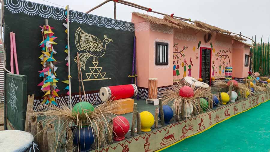 पैवेलियन के भीतर प्रवेश करते ही बांयी तरफ छत्तीसगढ़ के जीवंत ग्रामीण परिवेश को दिखाया गया है। यहां पर परंपरागत ग्रामीण जीवन के साथ ही आदिवासी कला, संस्कृति, आभूषण, वस्त्र समेत एक संपूर्ण गांव का चित्रण किया गया है।