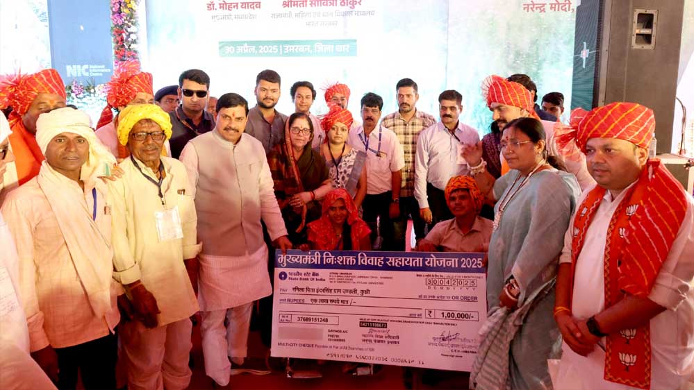 मुख्यमंत्री डॉ. यादव ने उमरबन में आयोजित मुख्यमंत्री सामूहिक कन्या विवाह सम्मेलन में परिणय सूत्र में बंधे 2123 नवविवाहित जोड़ों को आशीर्वाद दिया। उन्होंने कहा कि आज उमरबन की धरती से प्रदेश को कई सौगातें मिली हैं। कन्या विवाह योजना में बेटियों को प्रावधान के अनुसार 49 हजार का लाभ दिया जा रहा है। इसके साथ ही सामूहिक विवाह सम्मेलन में कल्याणी विवाह और अन्तर्जातीय विवाह करने पर राज्य सरकार की ओर से 2-2 लाख रुपए की सहायता दी जा रही है। मुख्यमंत्री डॉ. यादव ने कहा कि विवाह में गैर-जरूरी खर्च से बचा जाए और यह राशि परिवार और बच्चों की पढ़ाई जैसे जरूरी कार्यों पर खर्च किया जाये। उन्होंने कहा कि प्रदेश की बहनों का भाई गरीब से गरीब की बेटी का विवाह कराएगा।