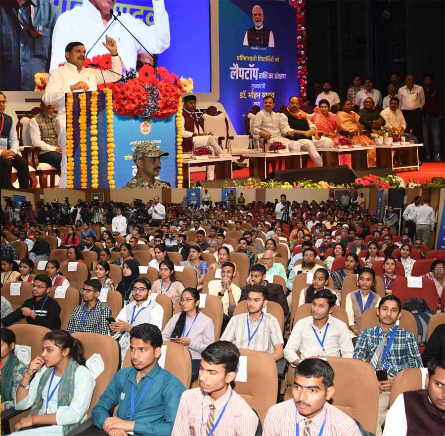 मुख्यमंत्री डॉ. मोहन यादव शुक्रवार को प्रतिभाशाली विद्यार्थियों के बैंक खाते में लैपटॉप की राशि अंतरित की। भोपाल के आरसीव्हीपी नरोन्हा प्रशासन अकादमी के स्वर्ण जयंती सभागार में राज्य स्तरीय कार्यक्रम आयोजित किया गया। मुख्यमंत्री डॉ. मोहन यादव ने मध्यप्रदेश माध्यमिक शिक्षा मंडल की परीक्षा वर्ष 2023-24 में कक्षा 12 की बोर्ड परीक्षा में 75 प्रतिशत या उससे अधिक अंक से उत्तीर्ण होने वाले प्रदेश के 89 हजार 710 प्रतिभाशाली विद्यार्थियों को सिंगल क्लिक से उनके बैंक खातों में 224 करोड़ रुपये की राशि अंतरित की। इस अवसर पर मुख्यमंत्री ने कहा कि जिन बच्चों के खाते में लैपटॉप की राशि पहुंच रही है। बच्चे लैपटॉप का बिल अपने स्कूल तक पहुंचाना। ताकि राशि का सही उपयोग सुनिश्चित हो।