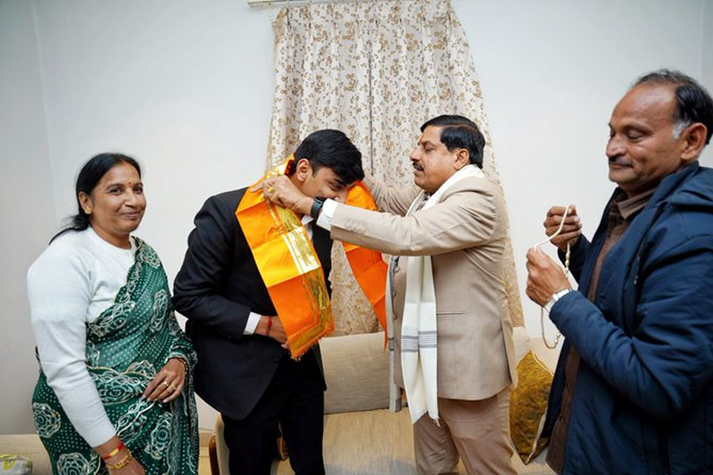 मुख्यमंत्री डॉ. यादव ने अक्षत के उज्ज्वल भविष्य की कामना करते हुए कहा कि उनकी यह उपलब्धि प्रदेश के युवाओं को अपने लक्ष्य प्राप्त करने के लिए प्रेरित करेगी।