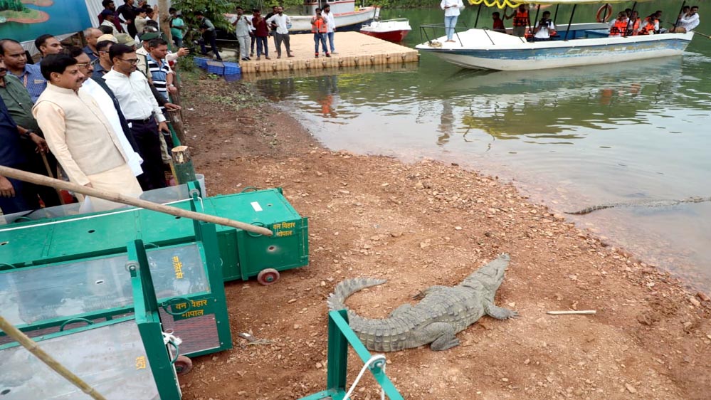 मुख्यमंत्री डॉ. यादव ने कहा कि मध्यप्रदेश में वन्यजीवों के साथ ही मगरमच्छ जलीय जीवों के संरक्षण एवं संवर्धन में निरंतर वृद्धि होगी। प्रदेश में सभी प्रकार के जीवों के संरक्षण अभियान के तहत भारतीय संस्कृति में मनुष्य एवं वन्यजीव परस्पर एक दूंसरे पर निर्भर हैं। मगरमच्छ जलीय पारिस्थितिक तंत्र की अहम कड़ी है। इंदिरा सागर परियोजना के बैक वाटर क्षेत्र में माँ नर्मदा के वाहन के संरक्षण एवं संवर्धन की दृष्टि से पूर्ण अनुकुल माहौल उपलब्ध है।