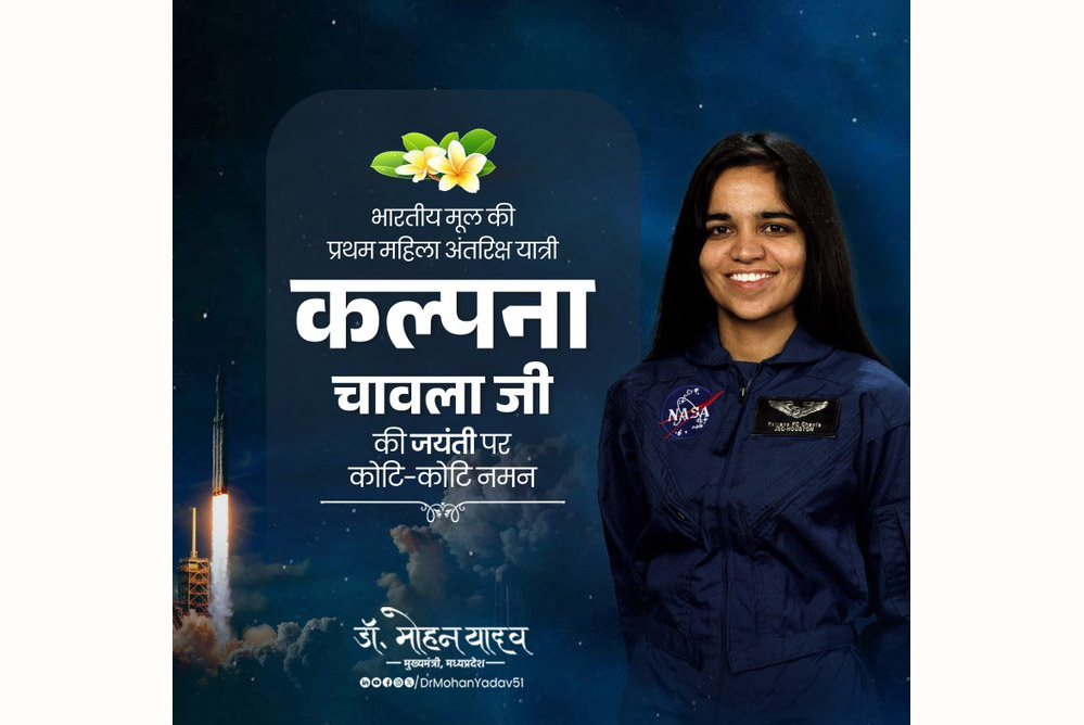 मुख्यमंत्री डॉ. यादव ने अंतरिक्ष यात्री कल्पना चावला की जयंती पर स्मरण किया