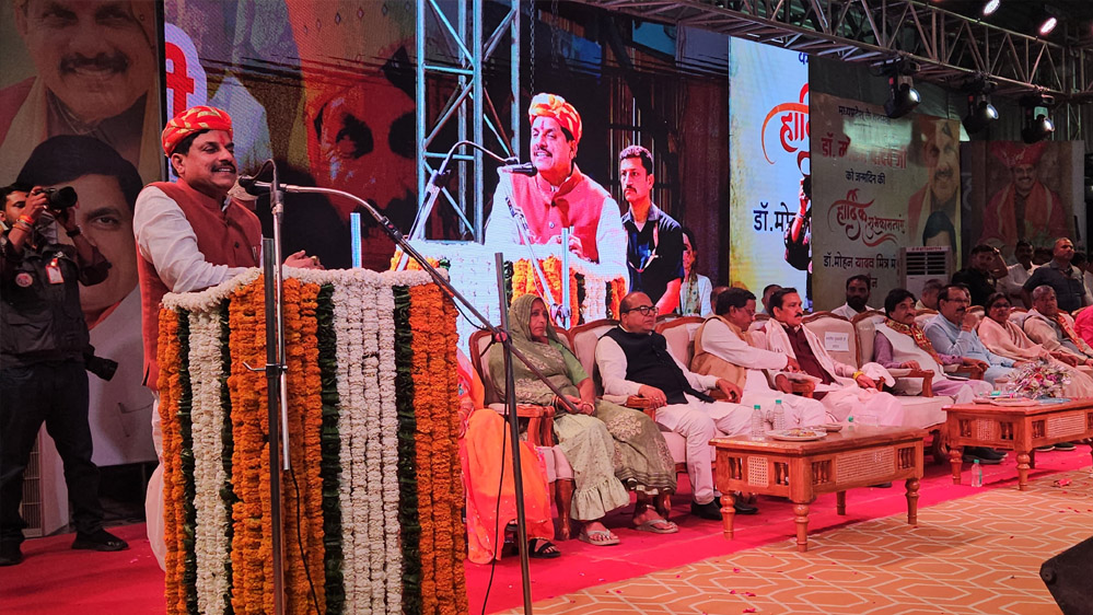 मुख्यमंत्री डॉ. यादव का 100 किलो के वृहद पुष्पहार से किया अभिनंदन