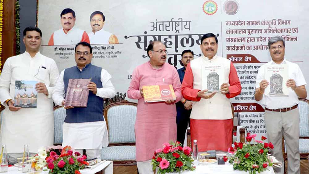 मुख्यमंत्री डॉ. यादव ने मध्यप्रदेश टूरिज्म बोर्ड के त्रैमासिक न्यूज लैटर “ऑफबीट मध्य प्रदेश” के द्वितीय संस्करण का विमोचन किया । मुख्यमंत्री डॉ. यादव ने संचनालय पुरातत्व द्वारा प्रकाशित 11 नवीन पुस्तकों का विमोचन भी किया। इसमें भिंड जिले का पुरातत्व, रतलाम जिले का पुरातत्व, बैतूल जिले का पुरातत्व, बड़वानी जिले का पुरातत्व, कटनी जिले का पुरातत्व, भोपाल के चिचित्र शैलाश्रय, रायसेन के चिचित्र शैलाश्रय, सहित संचनालय का कंजर्वेशन मैनुअल और नियम पुस्तिका शामिल है। कार्यक्रम में प्रमुख सचिव संस्कृति श्री शिव शेखर शुक्ला ने संचालनालय पुरात्व द्वारा जारी गतिविधियों की जानकारी दी।
