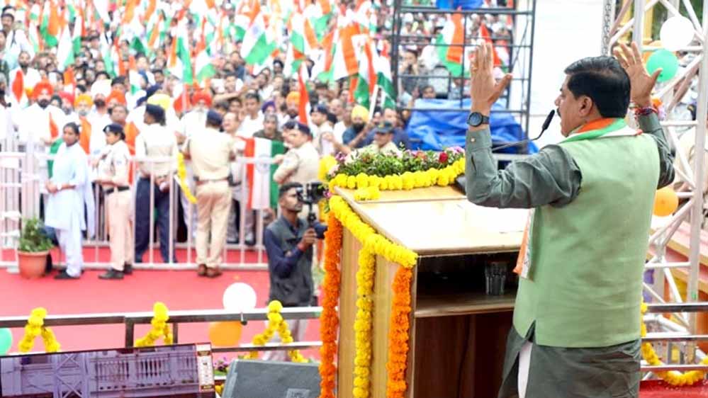 मुख्यमंत्री डॉ. मोहन यादव ने कहा है कि प्रधानमंत्री नरेन्द्र मोदी के नेतृत्व में भारत शक्तिशाली राष्ट्र के रूप में उभरा है। अब अन्याय सहन नहीं किया जाएगा। हमारी जांबाज सेना ने दुश्मनों को मुंहतोड़ जवाब देकर भारत की शक्ति का परिचय कराया है। मुख्यमंत्री डॉ. यादव बुधवार इंदौर में "हर घर तिरंगा, हर घर स्वच्छता" अभियान की विशाल यात्रा में शामिल हुए। पूरा शहर राष्ट्र की आन-बान-शान तिरंगे के रंग में रंग गया। देशभक्ति के जोश और जुनून का अद्भूत वातावरण देखने को मिला। शहर देशभक्ति गीतों और वंदे् मातरम तथा भारत माता की जय के नारों से गूंज उठा।