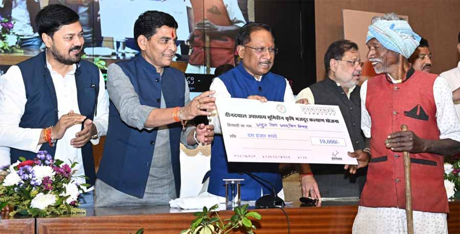 मुख्यमंत्री ने कहा कि राज्य के कुल 5 लाख 62 हजार 112 हितग्राहियों को इस योजना का लाभ मिलने जा रहा है। इस योजना के तहत पाँच सौ 62 करोड़ 11 लाख 20 हजार रुपये हम भूमिहीन कृषि मजदूरों को प्रदान करेंगे। मुख्यमंत्री साय ने कहा कि पंडित दीनदयाल उपाध्याय भूमिहीन कृषि मजदूर कल्याण योजना को शुरू करने के पीछे हमारा उद्देश्य भूमिहीन कृषि मजदूर परिवारों के शुद्ध आय में वृद्धि कर उन्हें आर्थिक रूप से संबल प्रदान करना है। इस योजना में भूमिहीन कृषि मजदूरों के साथ वनोपज संग्राहक भूमिहीन परिवार, चरवाहा, बढ़ई, लोहार, मोची, नाई, धोबी आदि पौनी-पसारी व्यवस्था से संबद्ध भूमिहीन परिवार भी शामिल हैं। इनके अलावा अनुसूचित क्षेत्रों में आदिवासियों के देवस्थल में पूजा करने वाले पुजारी, बैगा, गुनिया, माँझी  परिवारों को भी शामिल किया गया है। मुख्यमंत्री साय ने भूमिहीन मजदूर हितग्राहियों को 10 हजार रुपए की राशि का चेक वितरित किया।