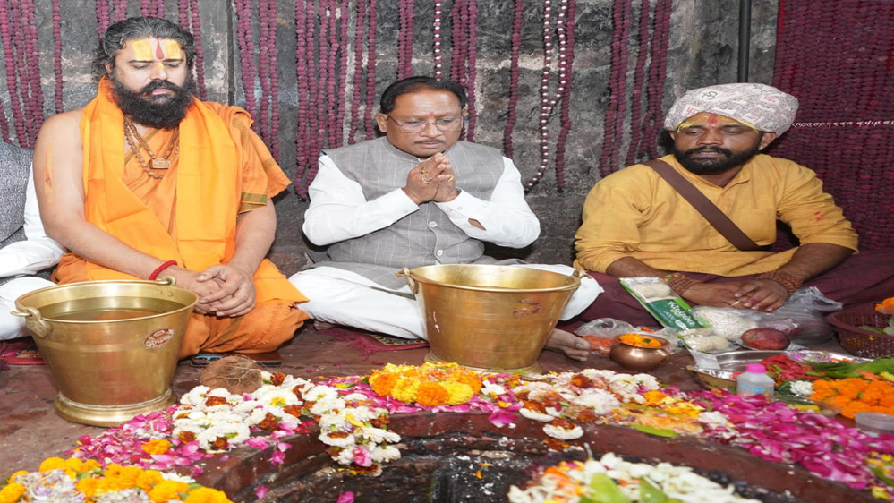 मुख्यमंत्री साय ने त्रिवेणी संगम में स्थित भगवान कुलेश्वरनाथ महादेव का जलाभिषेक कर छत्तीसगढ़ की उन्नति और प्रगति की कामना की
