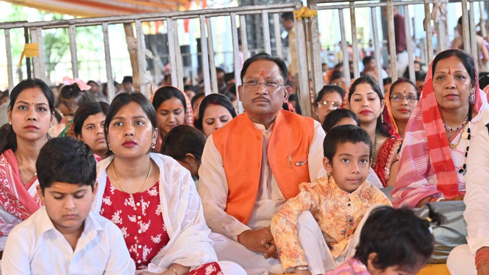 मुख्यमंत्री विष्णुदेव साय मायाली के मधेश्वर महादेव धाम में आयोजित 7 दिवसीय शिव महापुराण कथा में सहभागी बने