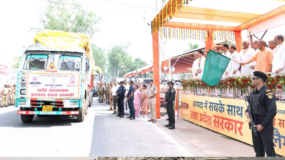 - मुख्यमंत्री योगी आदित्यनाथ ने बाढ़ प्रभावित राज्यों के लिए राहत सामग्री से भरे ट्रकों को दिखाई हरी झंडी