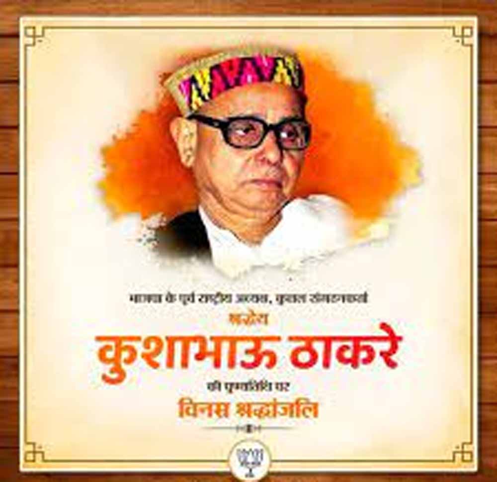 मध्यप्रदेश की राजधानी भोपाल में आज भारतीय जनता पार्टी (बीजेपी) के पितृ पुरुष कुशाभाऊ ठाकरे की जयंती मनाई गई। मुख्यमंत्री डॉ मोहन यादव कुशाभाऊ ठाकरे कन्वेंशन सेंटर में पुष्पांजलि अर्पित की। बीजेपी प्रदेश अध्यक्ष हेमंत खंडेलवाल के साथ पार्टी कार्यकर्ताओं ने पुष्पांजलि अर्पित कर उका भावभीना स्मरण किया।