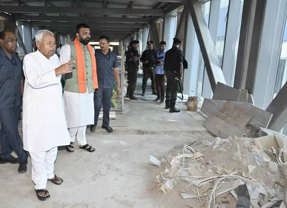एयरपोर्ट टर्मिनल के निर्माण कार्य का निरीक्षण करने पहुंचे सीएम नीतीश कुमार