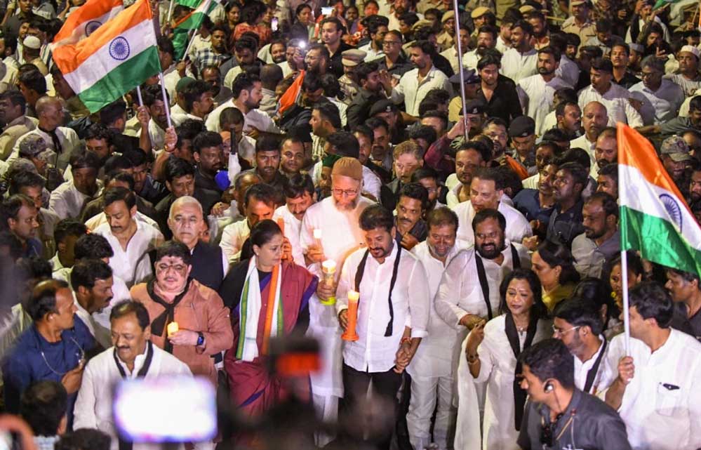 आतंकी हमले के विरोध में कैंडल लाइट रैली का नेतृत्व कर रहे रेवंत रेड्डी ने कहा, "पहलगाम जैसी घटनाओं को रोकने के लिए केंद्र सरकार के द्वारा निर्णायक कार्रवाई किए जाने की जरूरत है."