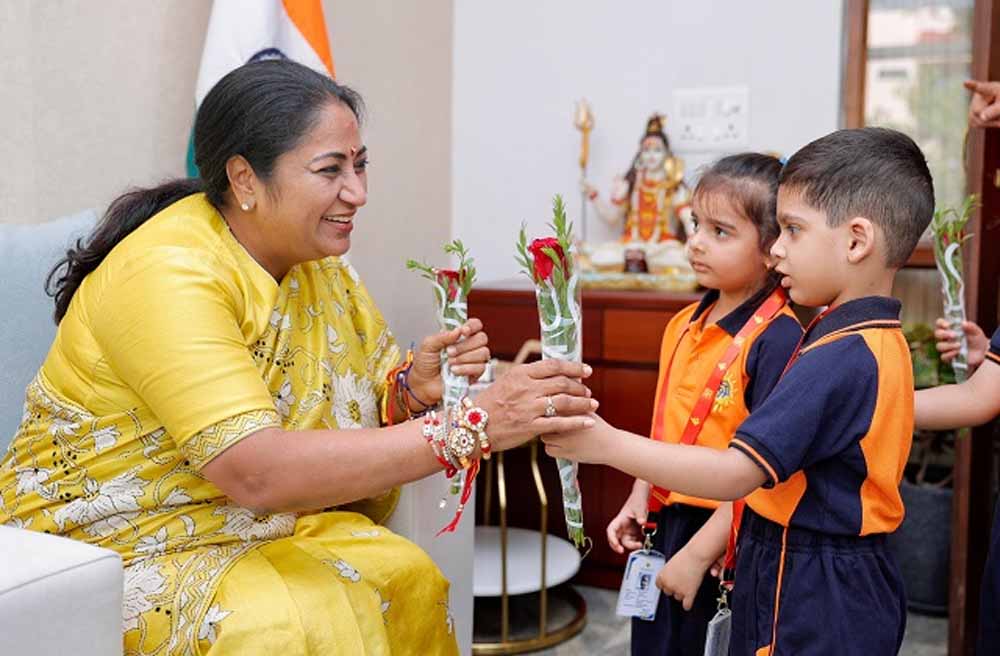 दिल्ली की मुख्यमंत्री रेखा गुप्ता ने गुरुवार को सरकारी स्कूलों के बच्चों के साथ रक्षाबंधन का त्योहार मनाया। मुख्यमंत्री ने बच्चों से प्यार से राखी बंधवाई और इन पलों की तस्वीरें अपने सोशल मीडिया हैंडल पर शेयर की हैं। तस्वीरों में वह बच्चों को दुलारती और उनसे राखी बंधवाती हुई नज़र आ रही हैं।