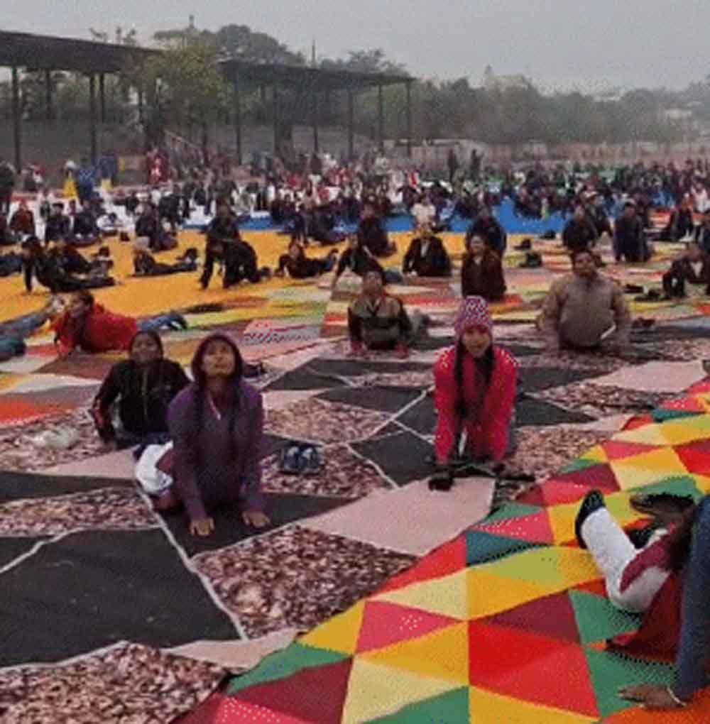 सागर के पीटीसी ग्राउंड में सामुहिक सूर्य नमस्कार किया। इसमें कैबिनेट मंत्री गोविंद सिंह राजपूत, विधायक शैलेंद्र जैन, कलेक्टर संदीप जीआर, छात्र भी शामिल हुए। उज्जैन के दशहरा मैदान में शासकीय, अशासकीय विद्यालय, कॉलेज के विद्यार्थीऔर जनप्रतिनिधि ने मिलकर सूर्य नमस्कार किया। जबलपुर के मॉडल स्कूल में सूर्य नमस्कार करते छात्र-छात्राएं।