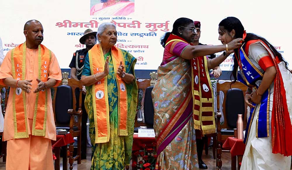 बरेली में भारतीय पशु चिकित्सा संस्थान (आईवीआरआई) के 11वें दीक्षांत समारोह में राष्ट्रपति द्रौपदी मुर्मु ने कहा कि प्लेग महामारी के बाद अस्तित्व में आए इस विश्वस्तरीय संस्थान ने पशु संबंधी बीमारियों के निदान से लेकर जैव सुरक्षा तक महत्वपूर्ण भूमिका निभाई है। यहां से डिग्री लेने वाले विद्यार्थियों को संदेश दिया है कि वह सर्वे भवन्तु सुखिन: सर्वे संतु निरामया: की भावना से सबके कल्याण की दिशा में काम करें।