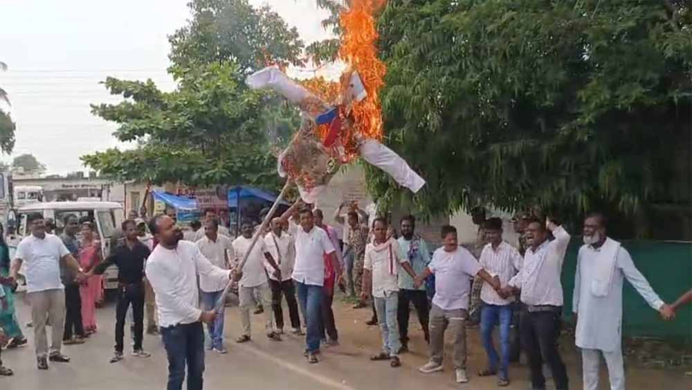 कांग्रेस ने कर्नल सोफिया के खिलाफ आपत्तिजनक टिप्पणी के मामले में जलाया मंत्री विजय शाह का पुतला