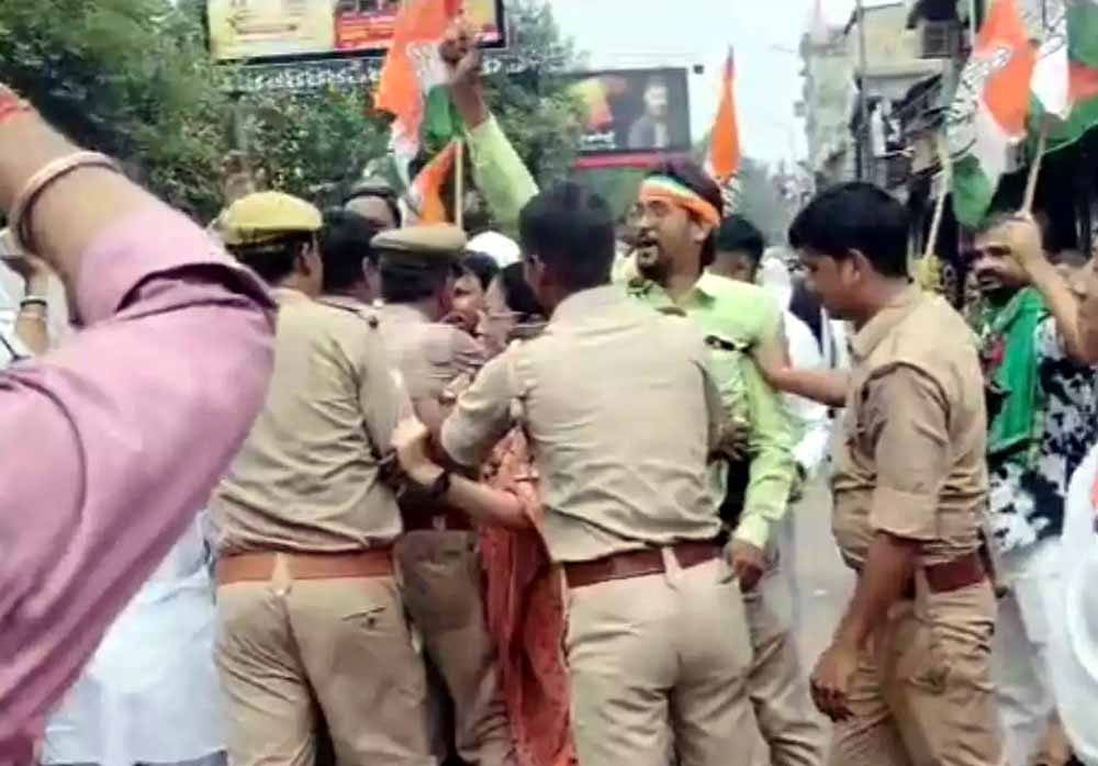 रास्ते में रुके कांग्रेस कार्यकर्ता, पुलिस के साथ हुई विवादित भिड़ंत