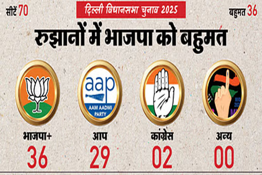 दिल्ली में विधानसभा चुनाव के नतीजे की घड़ी आ गई है. वोटों की काउंटिंग चल रही है. शुरुआती रुझान में बीजेपी आगे चल रही है. AAP भी कड़ी टक्कर दे रही है. AAP के कई दिग्गज नेता पीछे चल रहे हैं. दिल्ली में कुल 70 सीटें हैं और बहुमत के लिए 36 सीटें होना जरूरी है.
