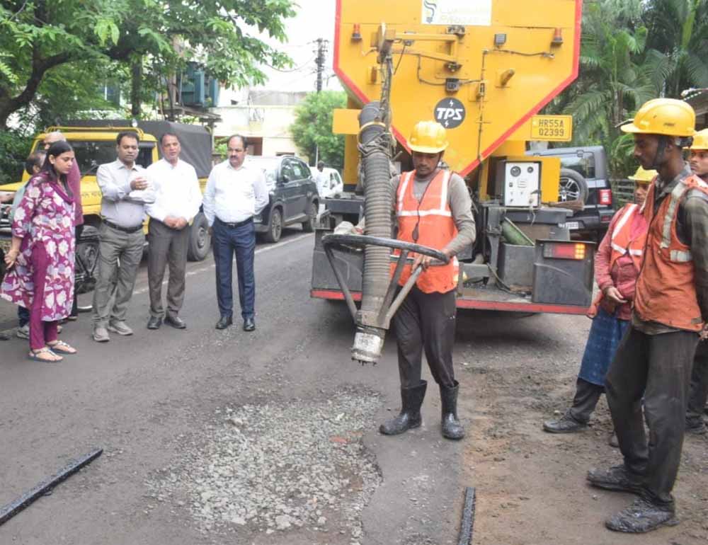 भोपाल में जैट पेचर तकनीक से सड़कों के गड्ढे भरने के कार्य का प्रदर्शन