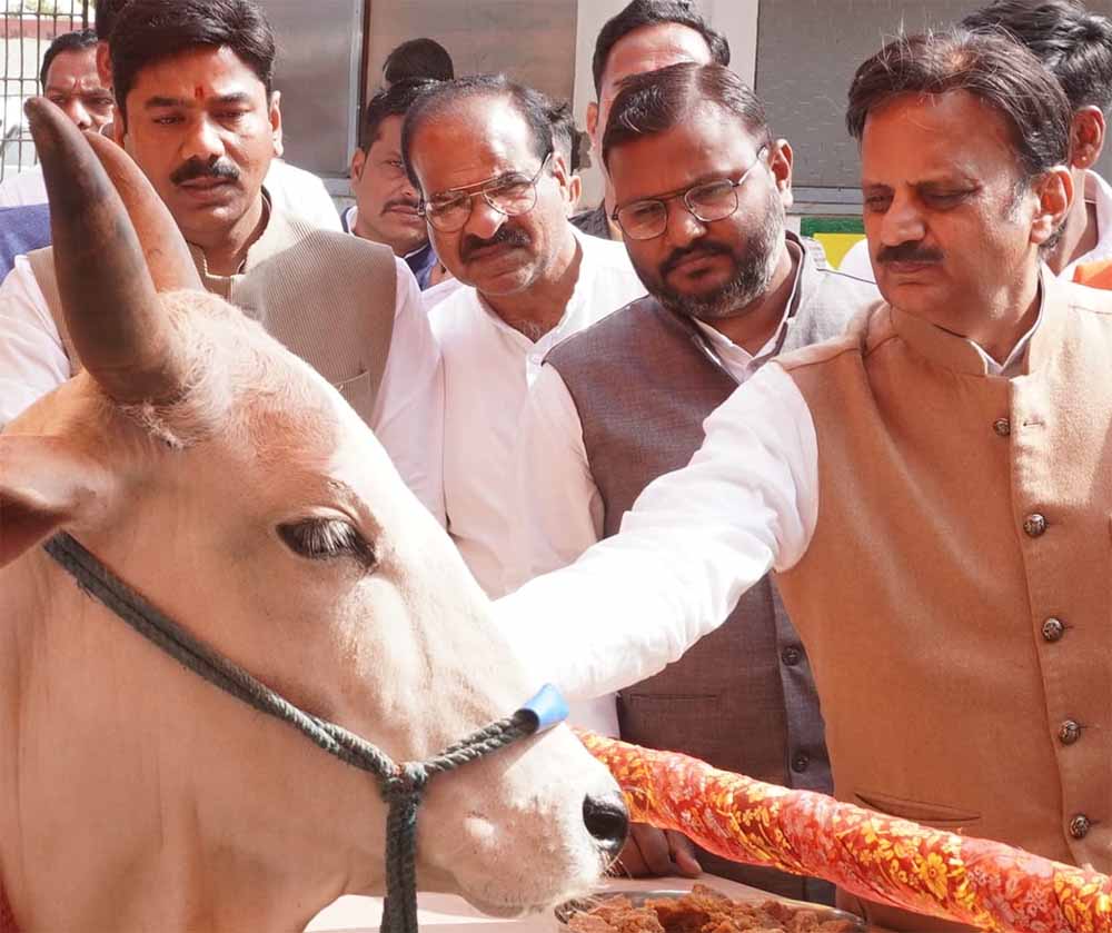 उप मुख्यमंत्री श्री शुक्ल ने गौ-शेड में जाकर गौवंशों के पालन की व्यवस्थाओं का जायजा लिया और गौ-माताओं का पूजन किया तथा पौष्टिक आहार के रूप में गुड़ खिलाया। विधायक श्री मधु गहलोत सहित स्थानीय जनप्रतिनिधि एवं संबंधित अधिकारी, कर्मचारी उपस्थित थे।