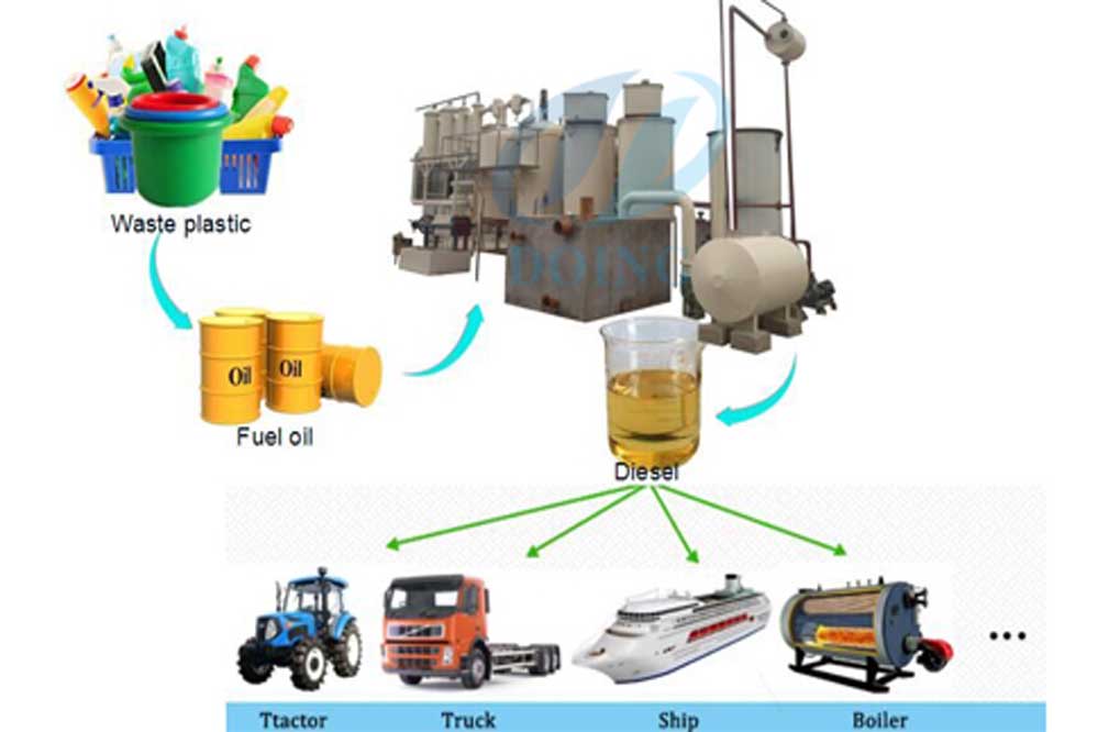 प्लास्टिक कचरे को रियक्टर में 350 से 450 डिग्री सेल्सियस तापमान पर गर्म किया जाता है। इसमें हाइड्रो कार्बन बनते हैं। इससे पेट्रोल, डीजल व कार्बन गैस का उत्पादन होता है। एक टन प्लास्टिक कचरे से 150 से 200 लीटर डीजल बन सकता है।