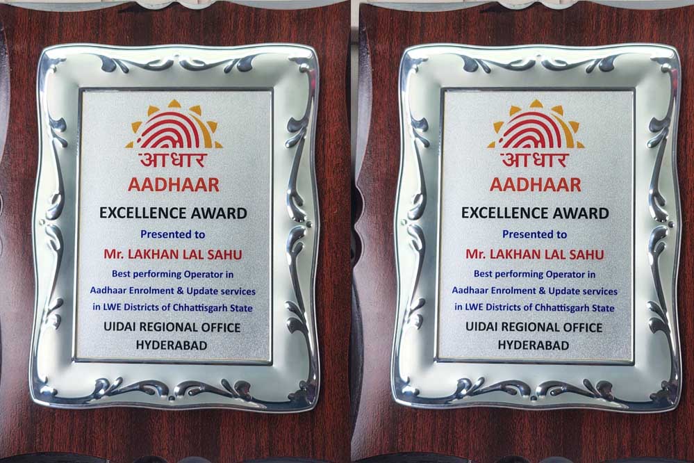 आदिवासी अंचलों में डिजिटल क्रांति, आधार संचालक लखन लाल साहू को मिला आधार एक्सीलेंस अवॉर्ड