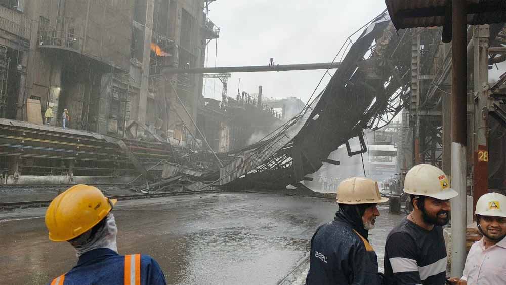 भिलाई स्टील प्लांट में कोक ओवन बैटरी 5-6 का जर्जर स्ट्रक्चर अचानक ढहा