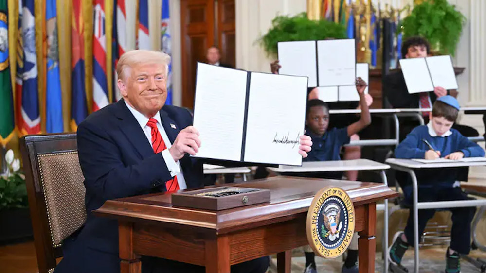 अमेरिका में एजुकेशन डिपार्टमेंट यानी शिक्षा विभाग पर ताला लग गया है. डोनाल्ड ट्रंप ने उस आदेश पर अपनी कलम भी चला दी है. जी हां, अमेरिकी राष्ट्रपति डोनाल्ड ट्रंप ने शिक्षा विभाग को ‘खत्म’ करने के उद्देश्य से एक आदेश पर हस्ताक्षर किए. यह अमेरिकी दक्षिणपंथियों का दशकों पुराना लक्ष्य रहा है. वो चाहते हैं कि अलग-अलग राज्य संघीय सरकार से मुक्त होकर खुद स्कूलों का संचालन करें. व्हाइट हाउस के ईस्ट रूम में डेस्क पर बैठे स्कूली बच्चों से घिरे डोनाल्ड ट्रंप एक खास समारोह में हस्ताक्षर करने के बाद आदेश दिखाते हुए मुस्कुरा रहे थे.