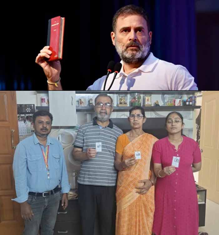 तस्वीर में परिवार के सदस्य अपने आवास पर मतदाता पहचान पत्र दिखाते हुए नजर आ रहे हैं। चुनाव आयोग के सूत्रों ने बताया कि परिवार के तीन सदस्य ओम प्रकाश बागड़ी, सरस्वती देवी बागड़ी और माला बागड़ी हैं।