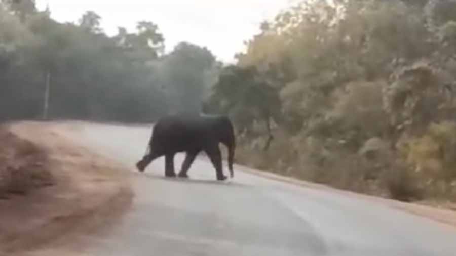 जतमई-छुरा मुख्यमार्ग पर विचरण करता दिखा हाथी