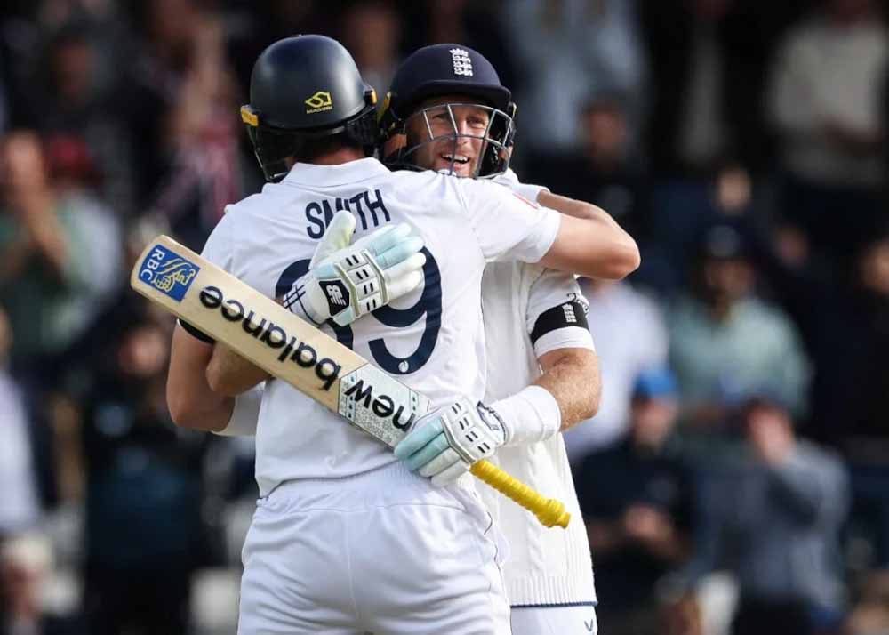 इंग्लैंड की टीम ने टेस्ट क्रिकेट में उस समय इतिहास रचा जब उन्होंने एजबेस्टन टेस्ट में भारत के 587 रनों के जवाब में पहली पारी में 407 रन बोर्ड पर लगाए। अब आप सोच रहे होंगे कि 407 रन बनाकर कोई टीम कैसे इतिहास रच सकती है। तो बता दें, इंग्लैंड को इस विशाल स्कोर तक पहुंचान में सिर्फ दो ही बल्लेबाजों ने अहम रोल अदा किया। हैरी ब्रूक ने जहां 158 रन बनाए वहीं जेमी स्मिथ ने 184 रनों की नाबाद पारी खेली। इन दोनों बल्लेबाजों के बीच 303 रनों की साझेदारी हुई, वहीं बाकी बल्लेबाज 105 रन ही जोड़ सके। यहां गौर करने वाली बात यह है कि इंग्लैंड की इस पारी के दौरान 6 बल्लेबाज खाता भी नहीं खोल पाए और 0 पर आउट हुए।
