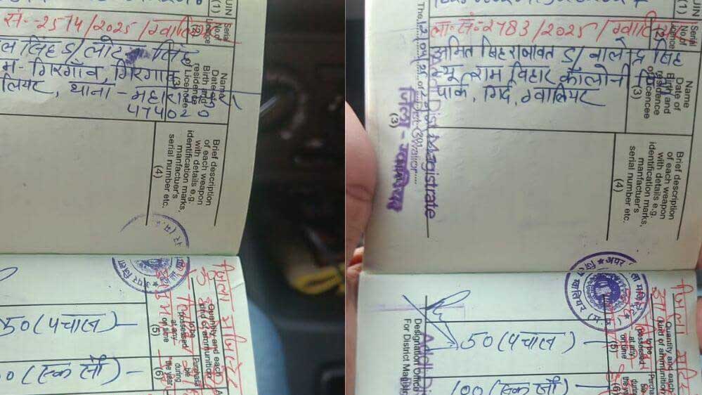ग्वालियर में ऐसे तीन पिस्टल लाइसेंस सामने आए हैं, जो मैन्युअली हाथ से लिखकर बनाए गए हैं। जबकि प्रदेश में अब गन लाइसेंस की ऑनलाइन प्रक्रिया लागू है और सॉफ्टवेयर बेस्ड सिस्टम से ही लाइसेंस जारी होते हैं।