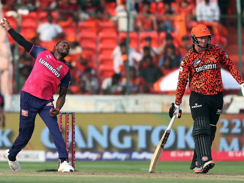 2021 के बाद RR के लिए खेल रहे आर्चर ने अपने पहले ही ओवर में 23 रन लुटाए, जिसमें ट्रैविस हेड ने चार चौके और एक छक्का लगाया। आर्चर ने 11वें ओवर में वापसी की और थोड़ी बेहतर गेंदबाजी की और दो चौकों सहित 12 रन दिए।
