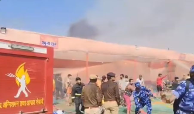 महाकुंभ में मेला क्षेत्र में फिर लगी आग: कई पंडाल जले, दमकल विभाग की गाड़ियां मौके पर