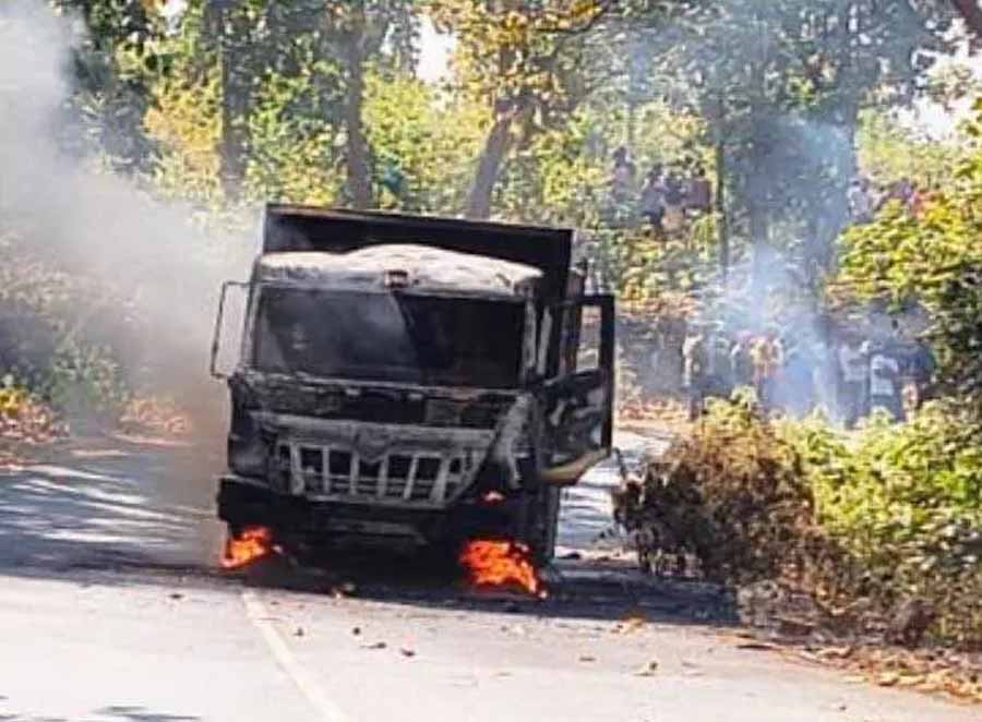 गिट्टी से लोडेड हाइवा में लगी आग, चालक-परिचालक ने वाहन से कूदकर बचाई जान